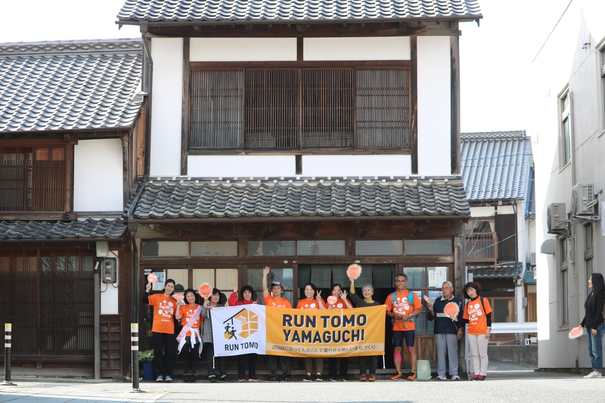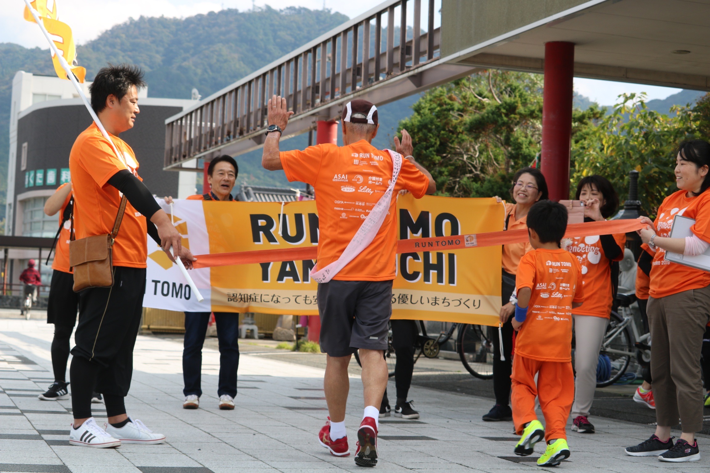Run伴(ランとも)は、認知症の人やそのご家族、地域の住民、専門職など、さまざまな人たちが「たすき」をつなぎながら走るイベントです。